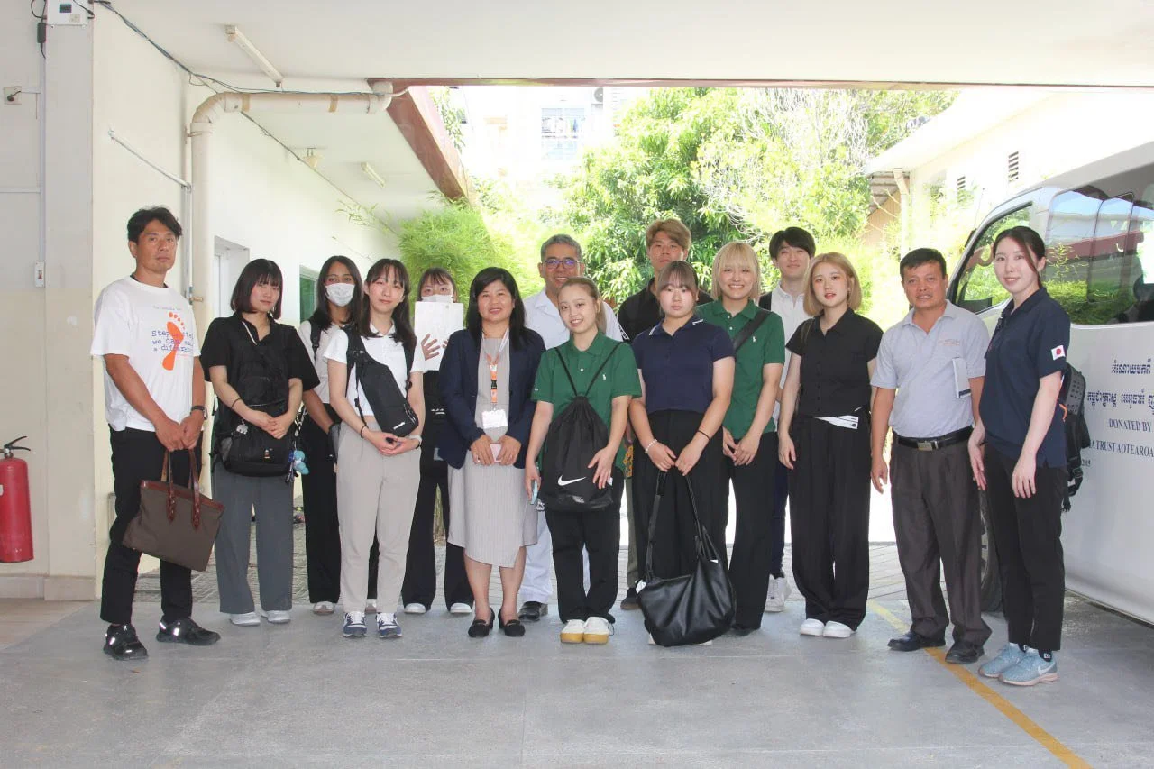 Tadasuke Onishi, Professor of Physiotherapy Department from JOSAI International University visited Exceed Worldwide with a number of students on 4th August 2025. Prof Tadasuke last visited The Cambodia Trust in 2000 where he was gifted a t-shirt that he proudly wore during his latest visit.